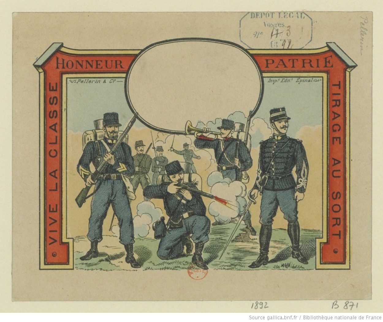 En France, depuis 1872, l’armée fonctionne sous le régime de la conscription. Les hommes âgés de 20 ans doivent se faire recenser dans leur lieu de résidence. S’ils sont jugés aptes au service, ils sont appelés sous les drapeaux. Tirer un bon numéro permet d’être exempté, mais ce système est abandonné en 1905. Pendant leur période de formation militaire initiale, les conscrits forment l’armée d’active. Ils sont ensuite versés dans la réserve : ils retournent à la vie civile mais restent susceptibles d’être mobilisés en cas de conflit armé ou pour une instruction complémentaire. Après plusieurs années dans la réserve et avant d’être libérés de toute obligation, les hommes passent encore par la territoriale, dédiée à la défense intérieure du territoire.