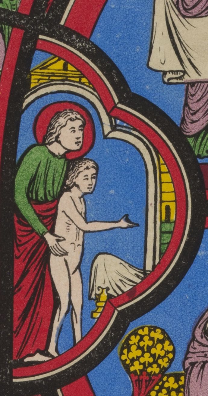 Il est inscrit au crayon à papier que 9 baguettes de plomb et 15 heures de travail ont été nécessaires pour la remise en plomb du vitrail, faite « le mercredi 10 janvier 1847 à 11 heure » et que le fortti a été « vu et approuvé par M. l’architecte de la cathédrale de Bourges, pour duplicata, [signé] Juillien ».
