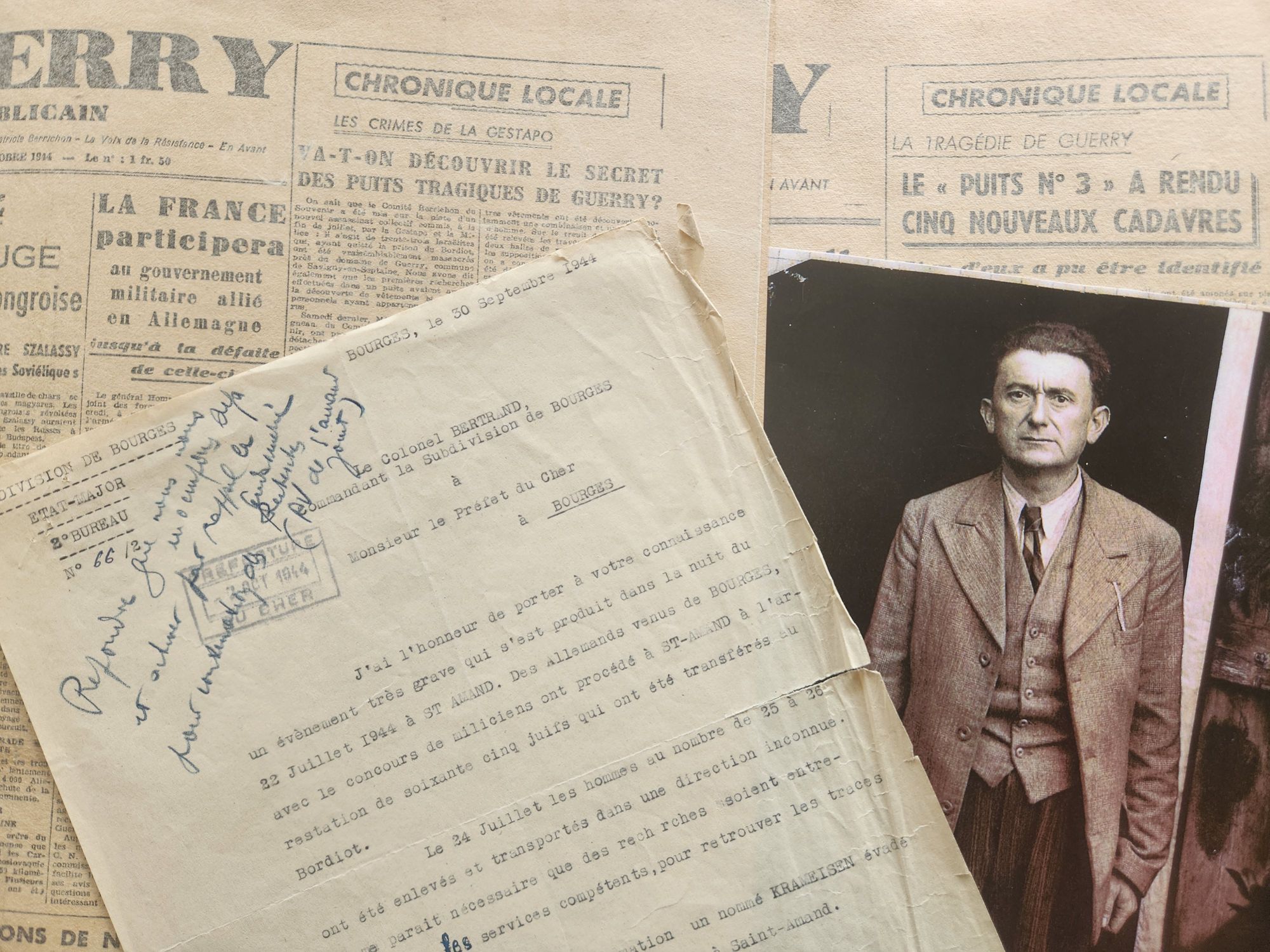 Répartis en quatre groupes, les élèves mènent une enquête sur le massacre des puits de Guerry en s’appuyant sur différents documents d’archives. À la manière des historiens, ils analysent ces sources pour reconstituer les événements survenus à la ferme de Guerry durant l’été 1944. Chaque groupe explore une thématique spécifique, puis présente oralement ses conclusions. À la fin des présentations, l’ensemble de la classe reconstitue collectivement les événements, ce qui permet à chacun de mieux comprendre cette tragédie.
