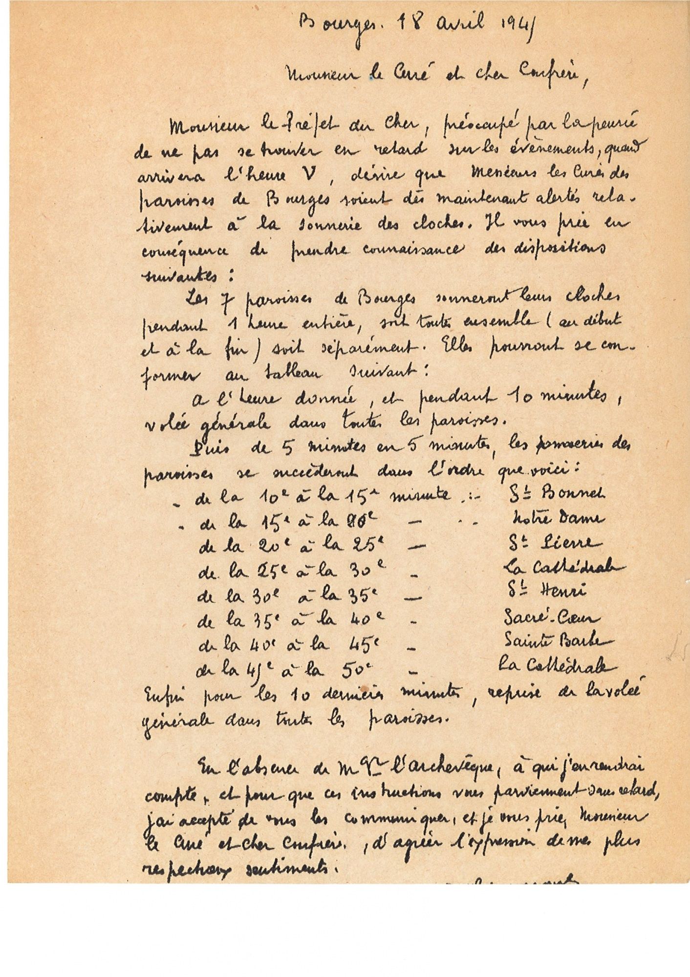 Un tract conçu par la préfecture du Cher et la mairie de Bourges est distribué dans les rues de la ville. Il invite notamment la population à se rassembler à 21h45 par quartier pour une retraite aux flambeaux, suivie de bals populaires sur les places publics.