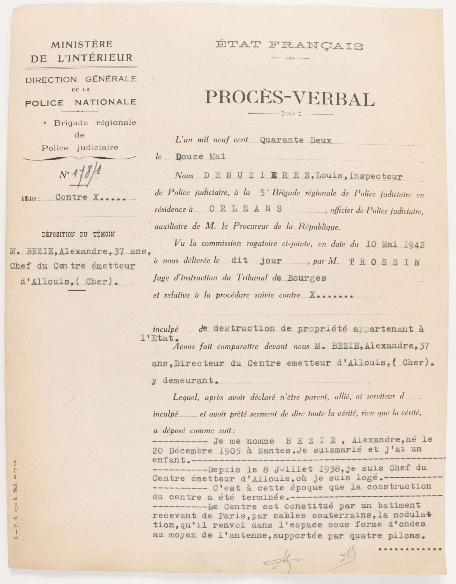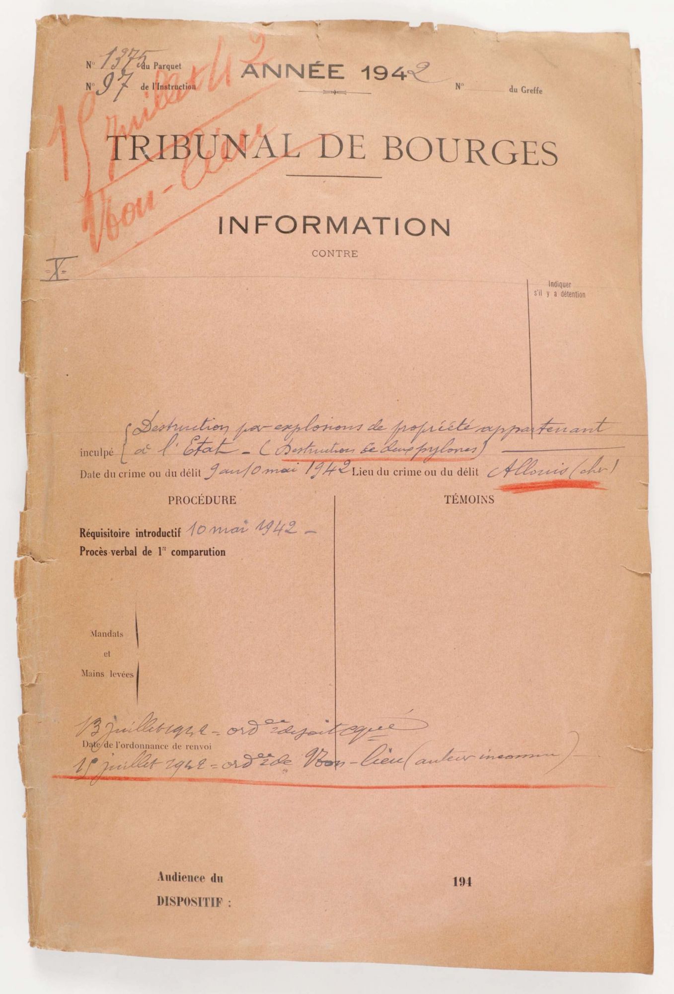 Les documents sont extraits d'un dossier de procédure du tribunal de Bourges.