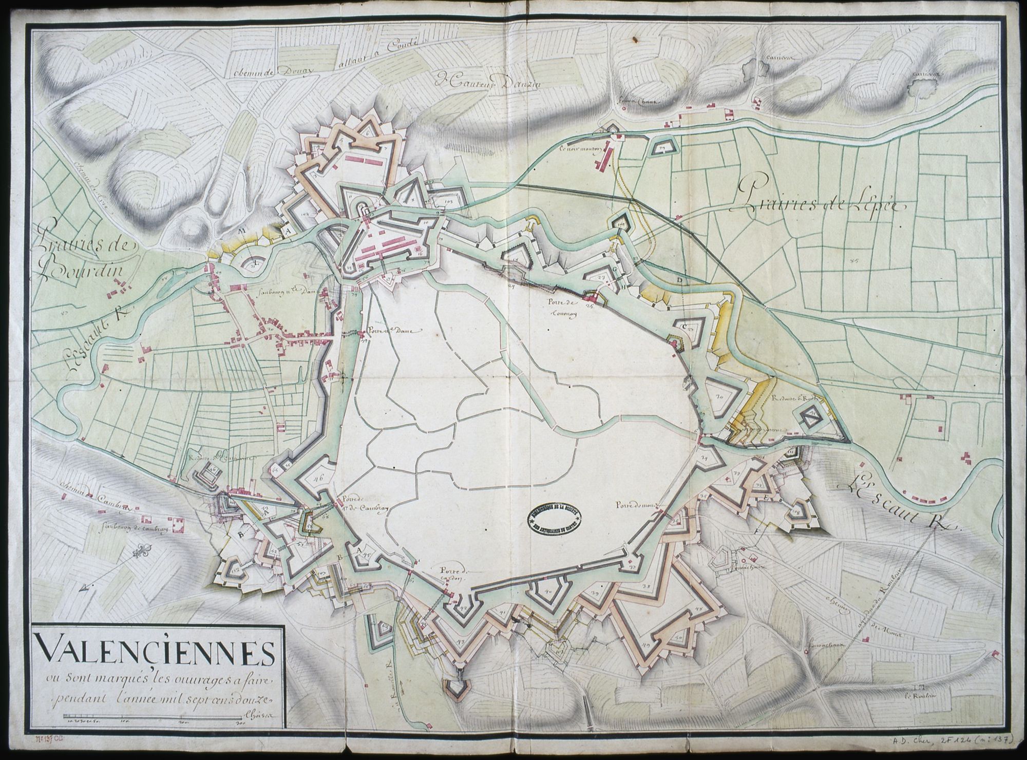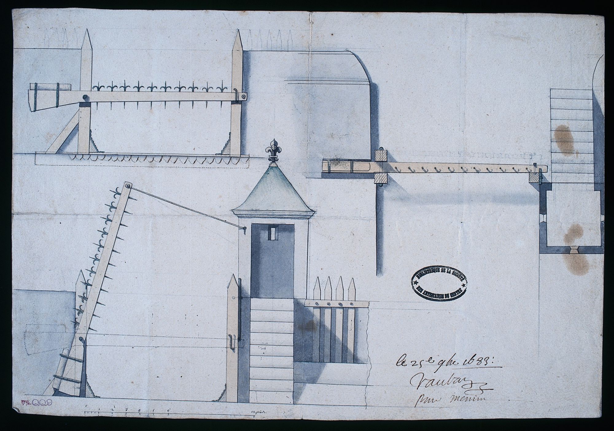 Parmi ces documents, l'un signé par Vauban représente un projet de porte de 1683. Mis à part les places du Nord, la collection comprend également quelques places de la frontière alpine entre la France et le Piémont ainsi que des places étrangères d'Allemagne, de Flandre ou des Pays-Bas.