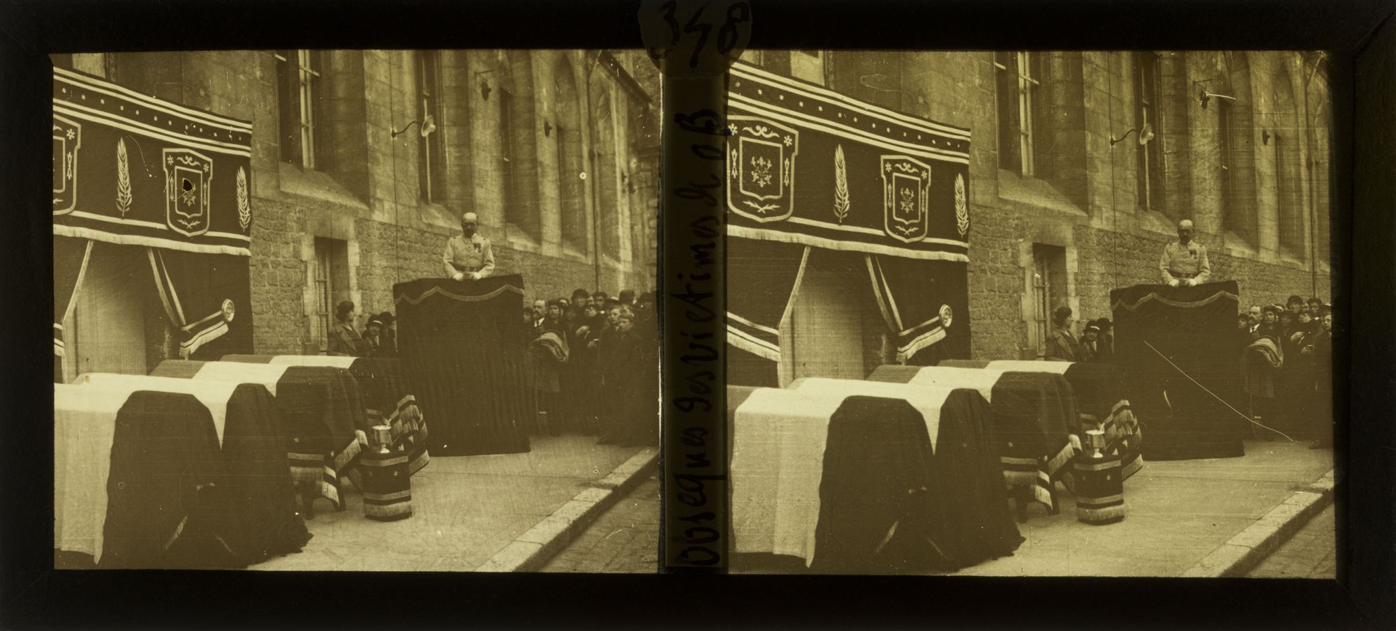Deux photographies représentant un cortège funéraire dans les rues de Bourges posaient un problème d'identification. Les archivistes avaient pensé à l'explosion au polygone de tir en 1907 mais les vues et les lieux ne correspondaient pas et les autres plaques de la collection dataient des années 1930.
