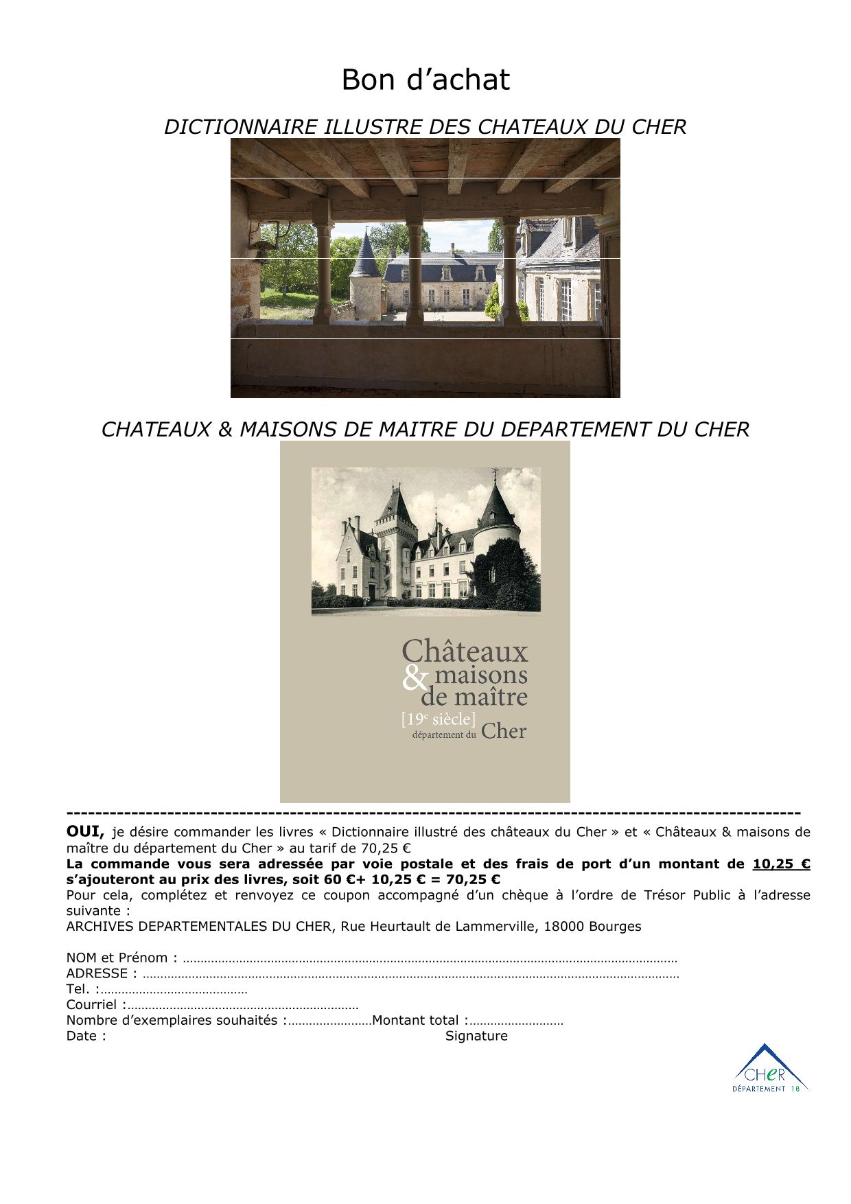 Châteaux et maisons de maître du département du Cher peut être vendu avec le Dictionnaire illustré des châteaux du Cher au prix de 60 € les deux volumes (au lieu de 65 €)