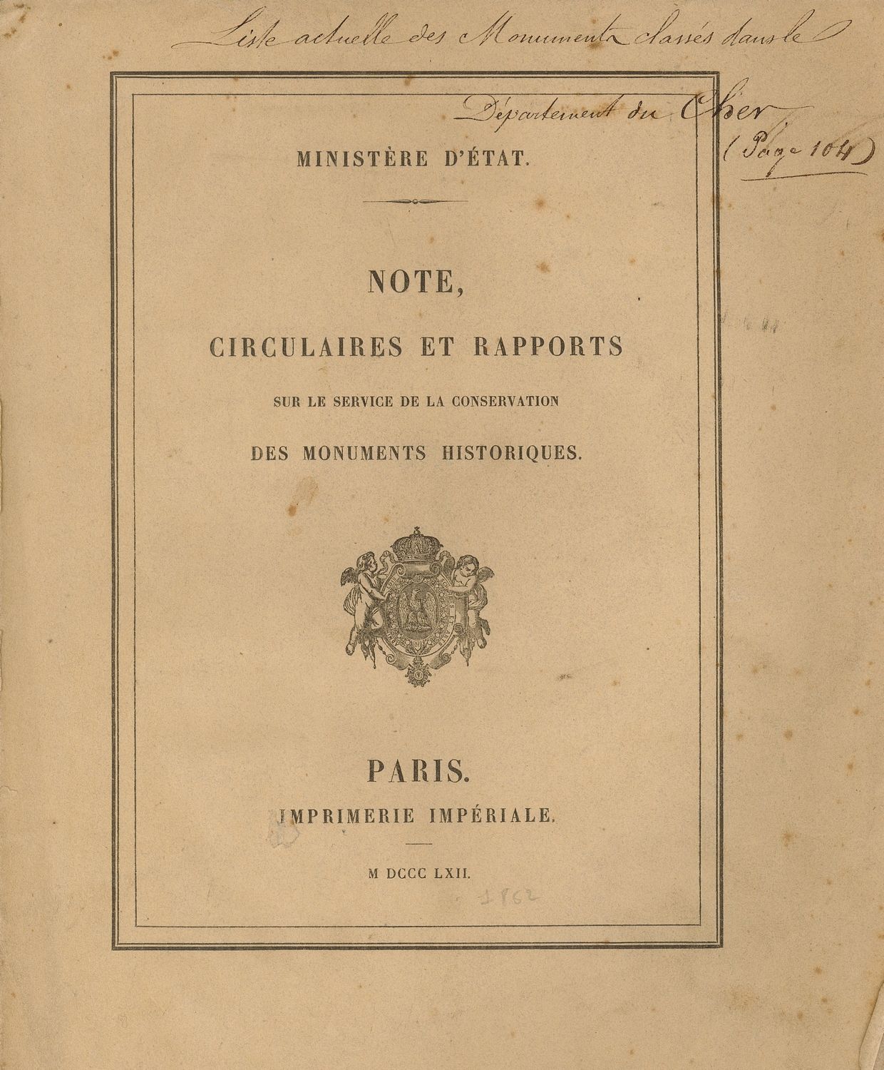 Ainsi, en août 1837, le comte Camille de Montalivet, ministre de l’Intérieur, appelle les préfets à faire connaître les « anciens monuments » et à les « classer » par ordre d'importance en indiquant les sommes nécessaires pour « les conserver ou remettre en bon état ».