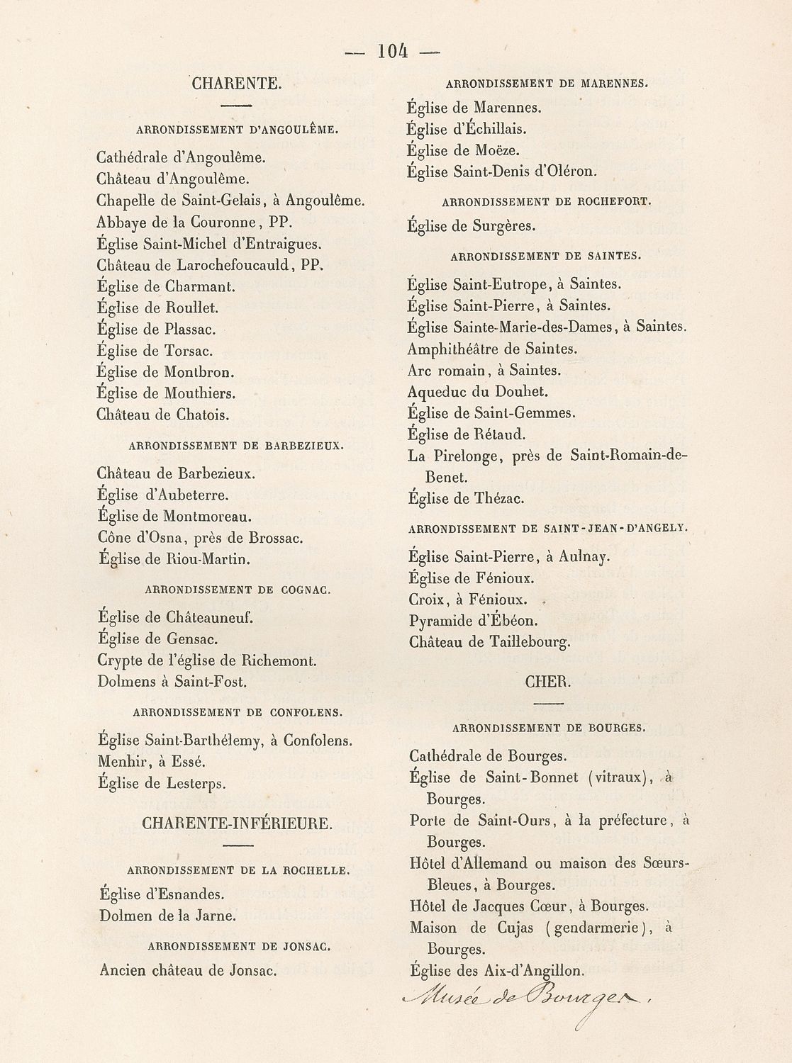 L’entretien des cathédrales appartenant encore en 1840 à l’administration des Cultes, Saint-Étienne de Bourges ne figure que sur la deuxième liste parue en 1862.