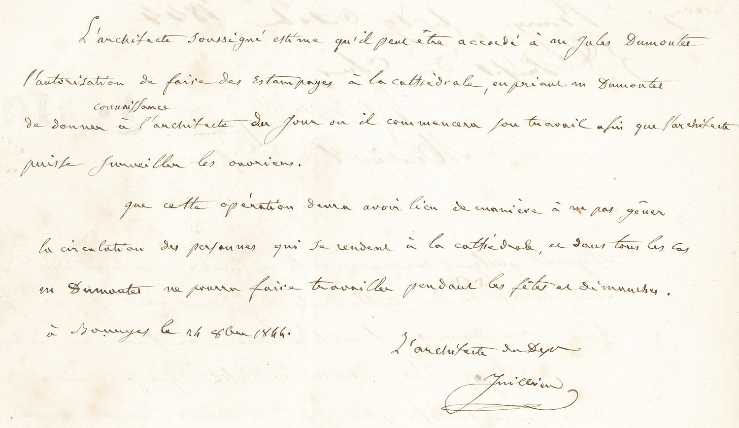 Le carnet original, comportant des dessins et notes sur les vitraux et sculptures, est présenté plus loin dans l’exposition. Il pourrait avoir été l’œuvre de François-Alexandre Hazé ou Jules Dumoutet mais une étude approfondie serait nécessaire pour une attribution certaine.