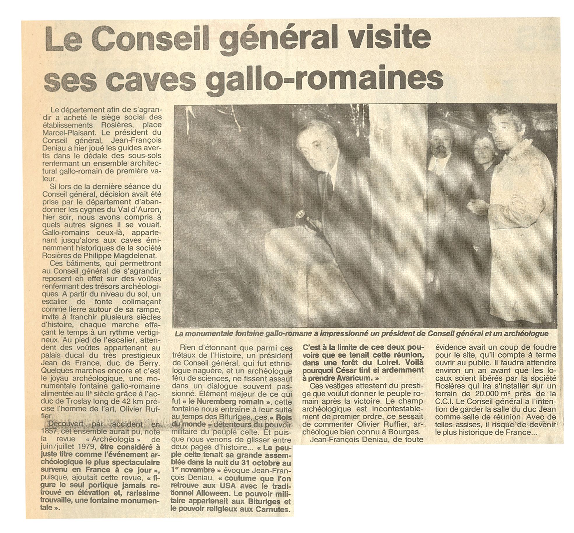 Ce n’est donc qu’entre 1987 et 1989, lorsque le Département du Cher se porte acquéreur des bâtiments des Usines de Rosières, édifiés sur la parcelle qui appartenait à M. Rolin au XIXe siècle, que la fontaine gallo-romaine devient un bien public.