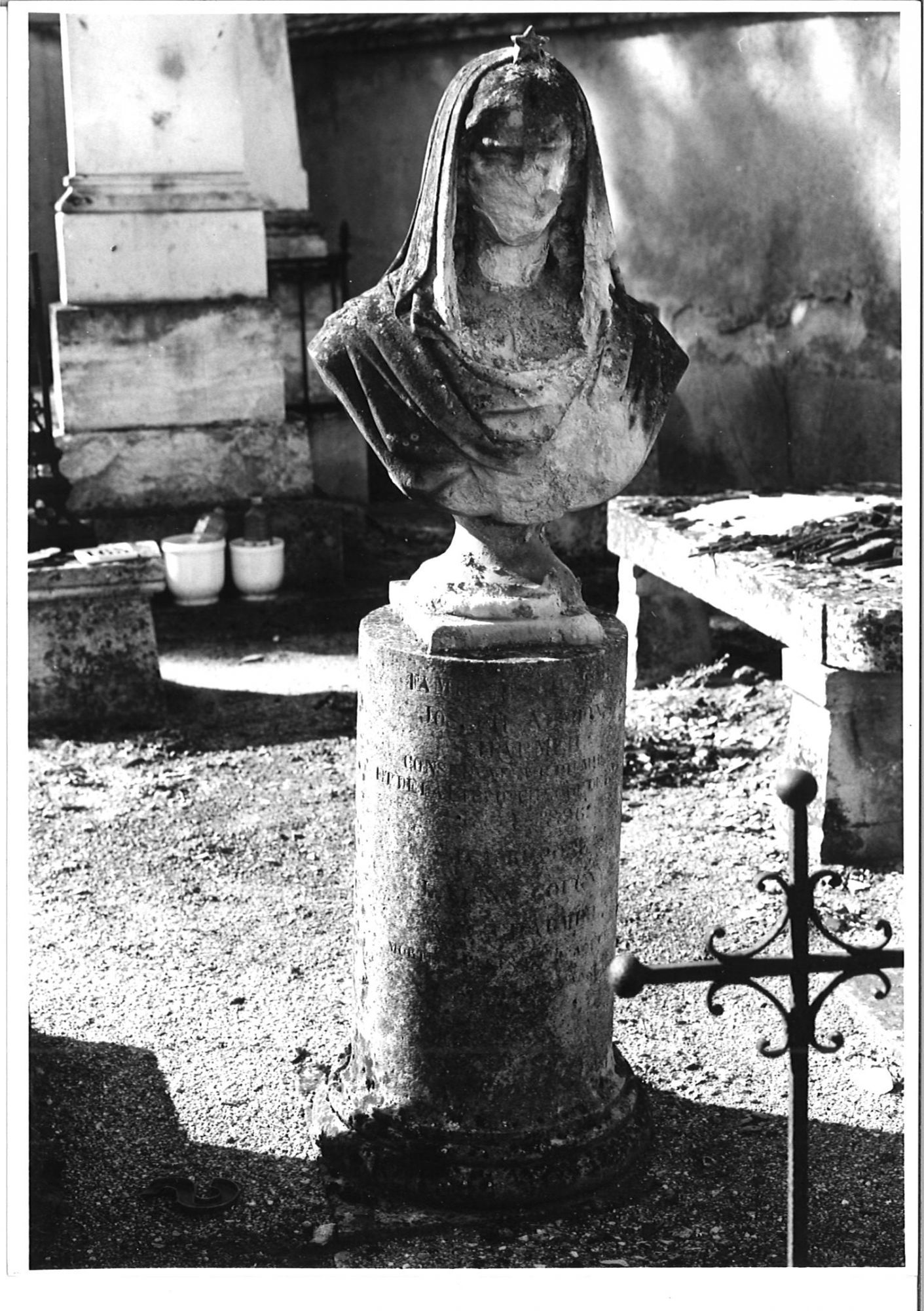 Fonds photographique de 1988 Ces photos en argentique nous donnent une image du cimetière en 1988. Depuis, certains éléments ont été volés, d'autres cassés, ou bien dégradés... Ces images nous permettent d'avoir une autre vision de ce patrimoine.
