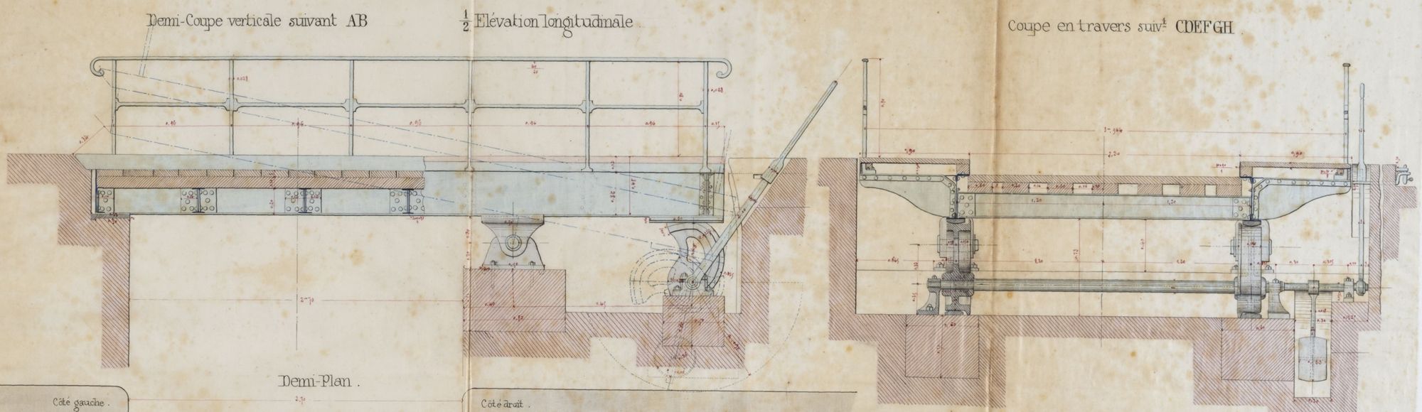 L’ingénieur Lecompte est chargé d'effectuer les calculs précis afin que l’ouvrage puisse supporter un véhicule de 8 tonnes tout en simplifiant la manœuvre de levée du pont. L’éclusier de Pierrelay, qui actionne le levier et ferme le cadenas maintenant le pont ouvert, loge dans une maison composée de trois pièces habitables salle à manger, chambre et cuisine) complétées par une chambre annexe, une mansarde et un poulailler.
