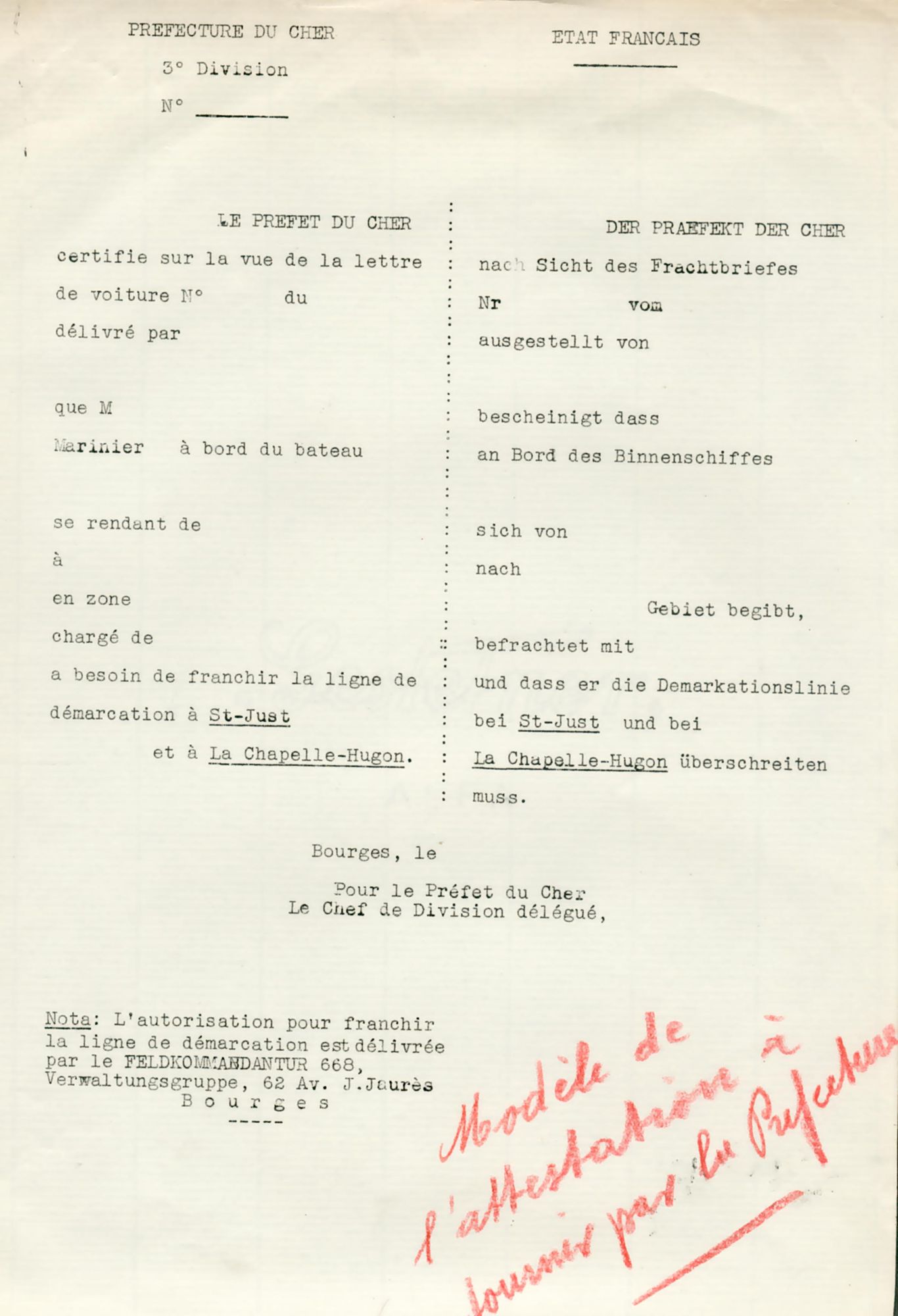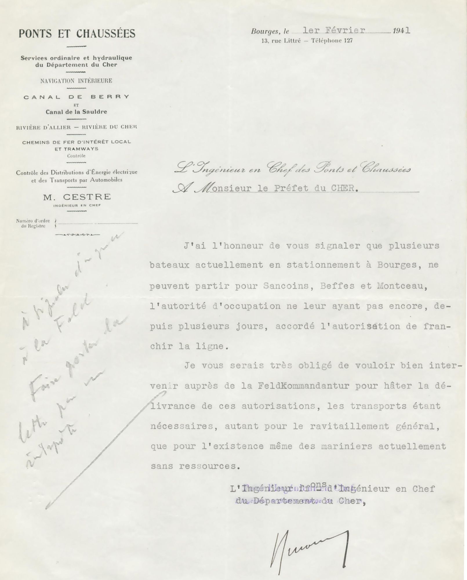 Sous l’Occupation, le canal est coupé par la ligne de démarcation sur chacune de ses branches : à Saint-Just et à La Guerche-sur-l’Aubois. Le passage des mariniers et de leurs marchandises s’en trouve fortement perturbé. Entre 1938 et 1949, le tonnage transporté est divisé par cinq, la section Noyers-sur-Cher-Fontblisse, de plus en plus délaissée, ne reçoit qu’un ou deux bateaux par mois.