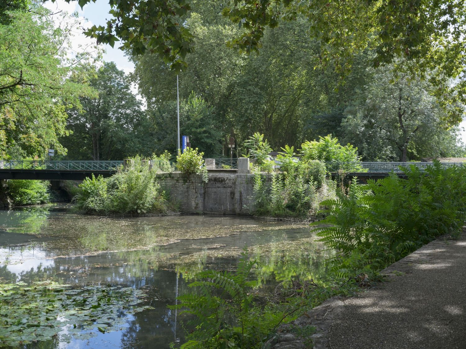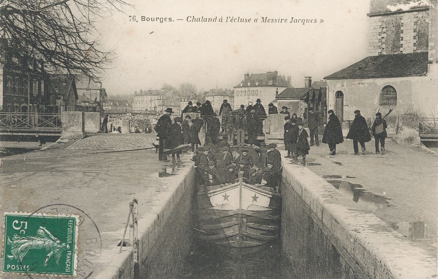 Le pont qu’emprunte aujourd’hui la rue Edmond Jongleux de Bourges reprend le tracé du pont d’une ancienne écluse, appelée Messire-Jacques, et de ses deux ponts latéraux au-dessus de l’Auron et de la Rampenne. Au nord, le canal se trouvait au centre des deux rivières qui se rejoignent pour former un plan d’eau, comme en témoigne le sas d’écluse muré mais encore perceptible entre les deux massifs semi-circulaires qui supportent les trois ponts. Au sud, il a été entièrement comblé pour laisser place à la trouée verte. Les ponts latéraux, construits en bois en 1829 pour l’ouverture à la navigation du canal à Bourges en 1832, furent reconstruits en 1862 avec des tabliers métalliques avec platelage en bois, pourvus de trottoirs et de garde-corps.