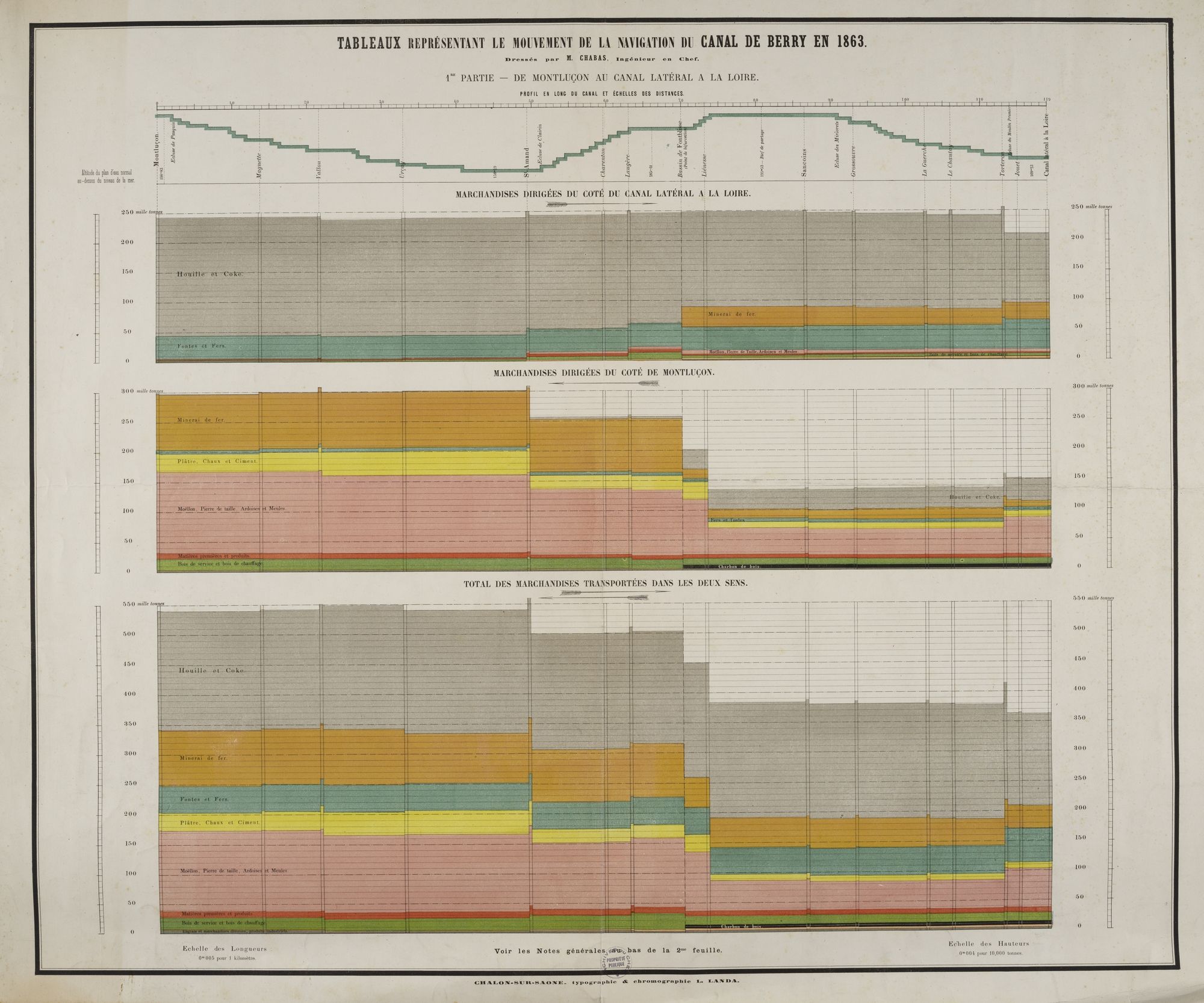 Dès son ouverture, le transport du charbon et de ses dérivés (coke, houille) de Commentry et du minerai de fer berrichon capte l’essentiel du fret sur le canal de Berry (2/3 des volumes de marchandises en 1880 sur la branche Montluçon-Marseilles-les-Aubigny).