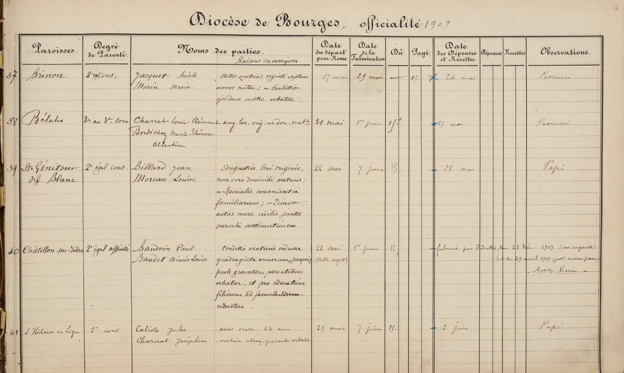 Les Archives départementales du Cher ont entamé une campagne de numérisation des dispenses d'empêchement de mariage. Les documents cotés 2 G 27 à 2 G 180 sont disponibles dans les archives numérisées.