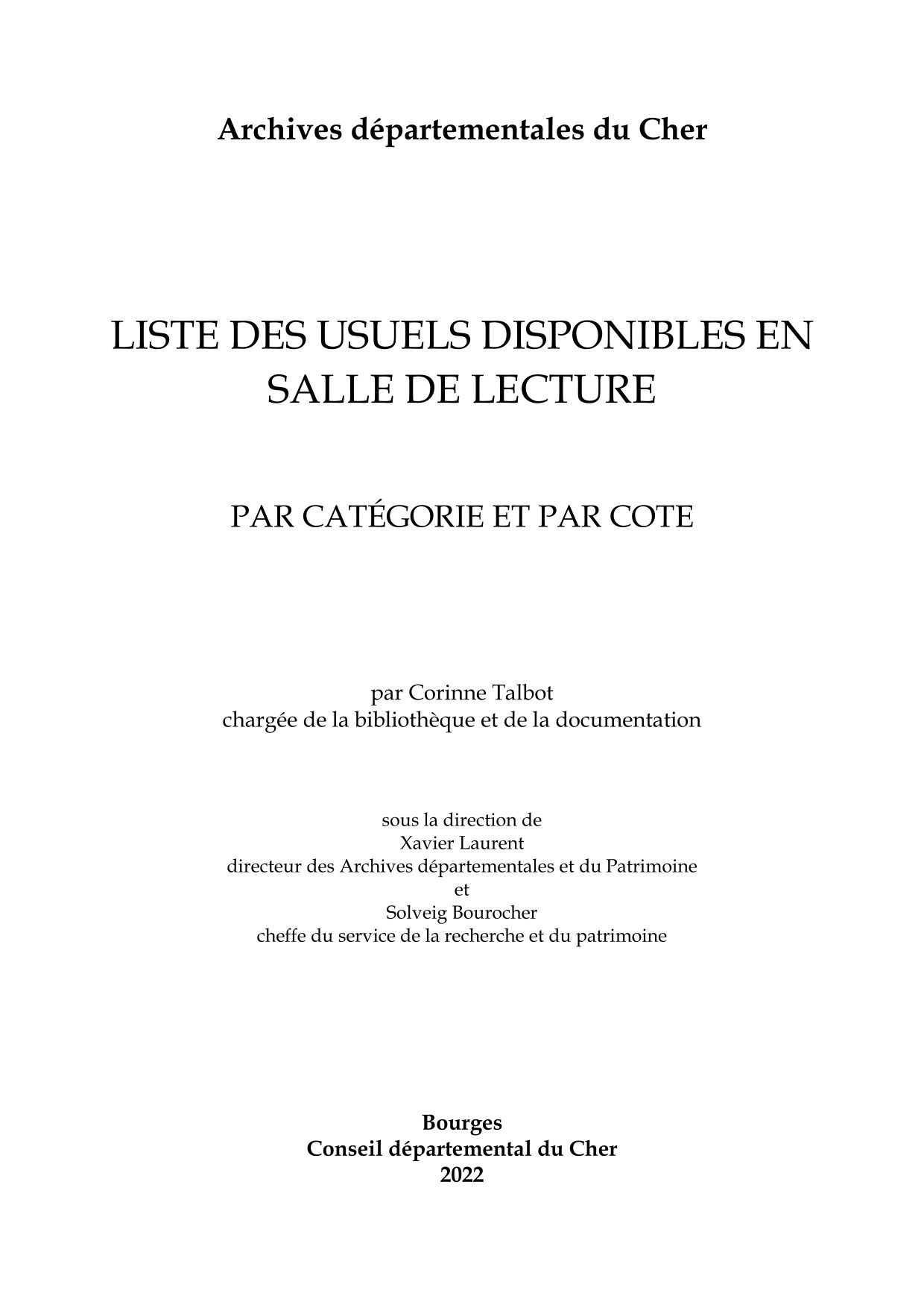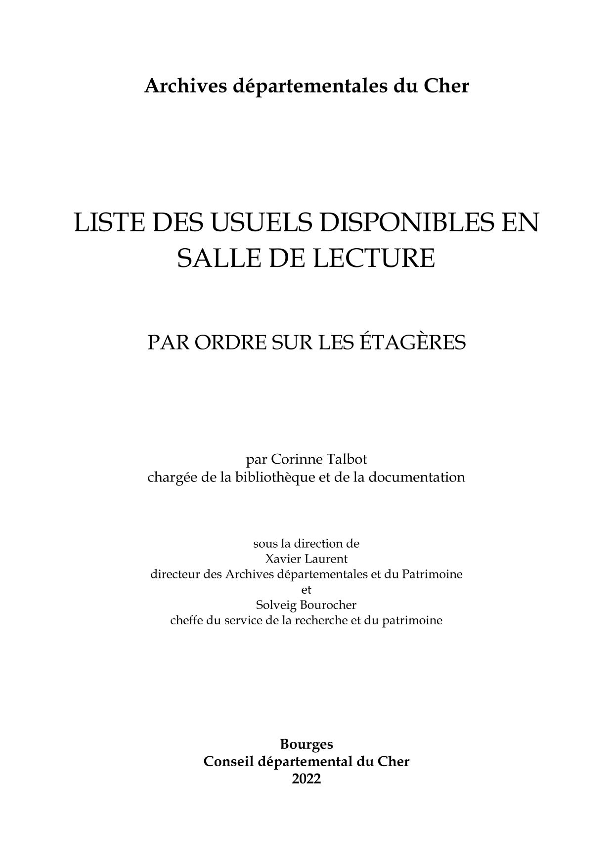 - L'état des fonds qui permet d'interroger une partie des instruments de recherche des Archives départementales du Cher et de repérer les cotes qui seront à commander en salle de lecture ;