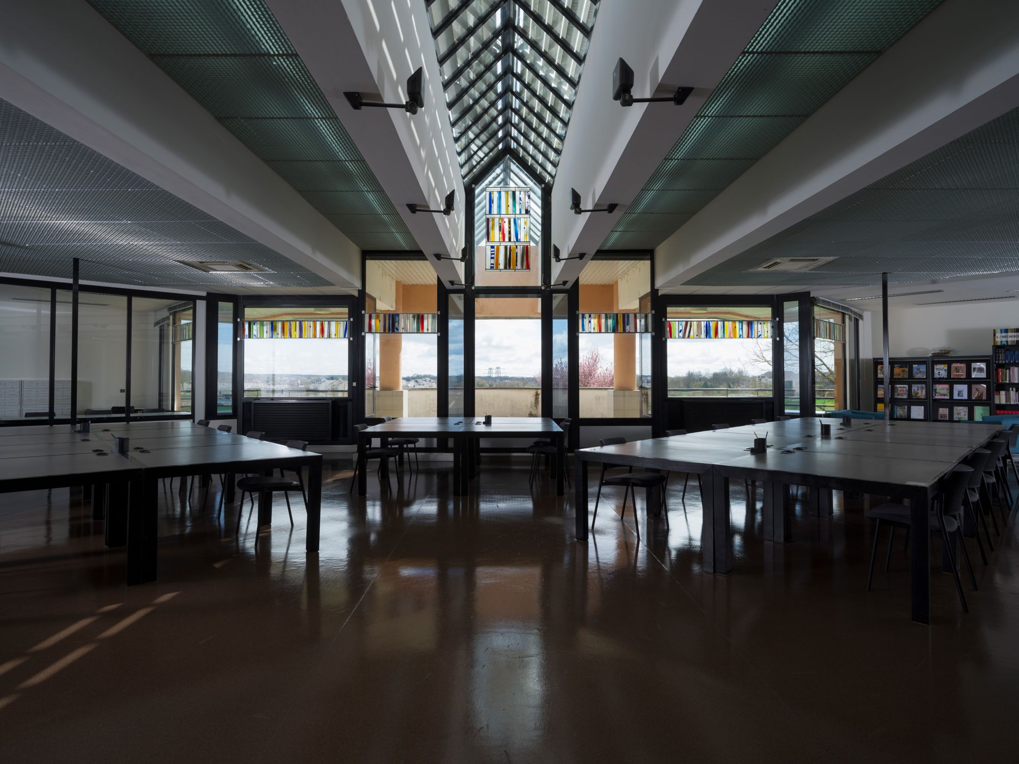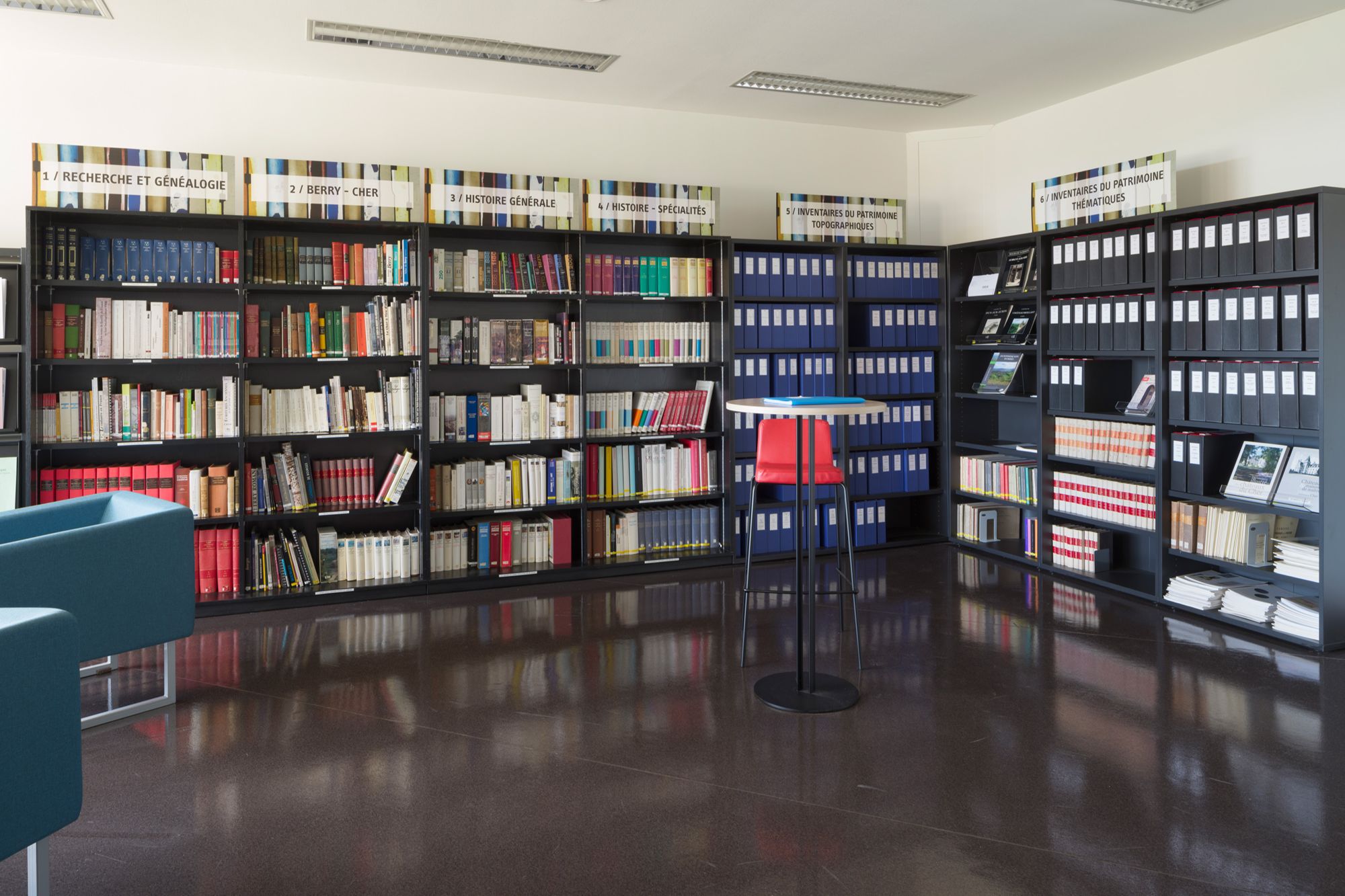 La salle de lecture dispose de 30 places et d'une annexe de 4 places pour des travaux en petit groupe.