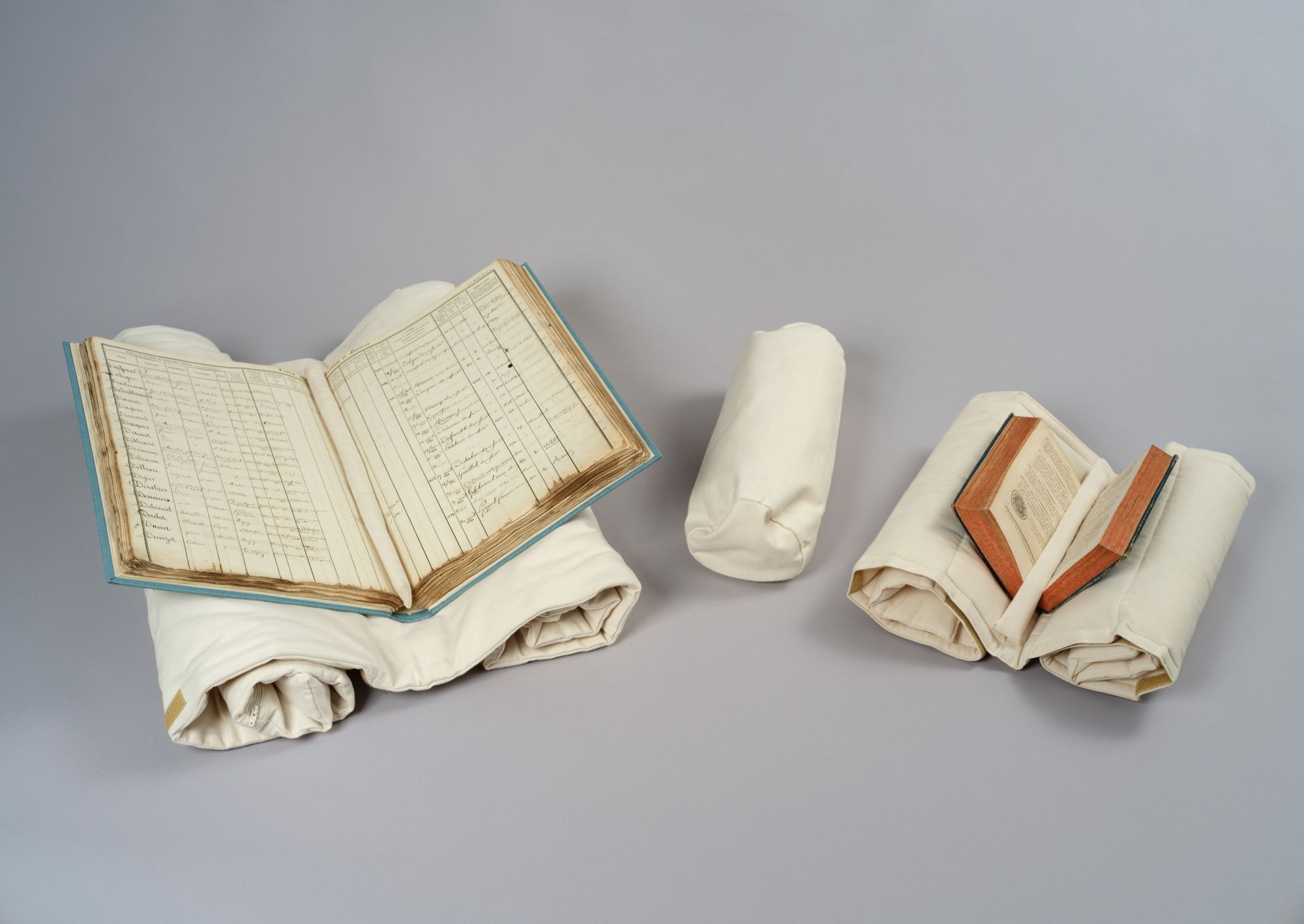 - Laisser les documents à plat (à l'aide de poids si nécessaire) ou utiliser les supports mis à disposition (lutrin futon et manchon de maintien) ;